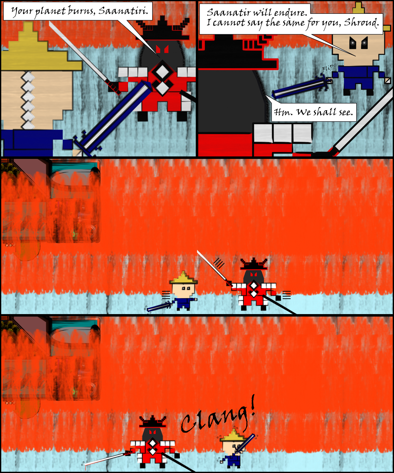 Sword crossed in battle. Shroud and Chon fight to the death. Vengeance will be his.