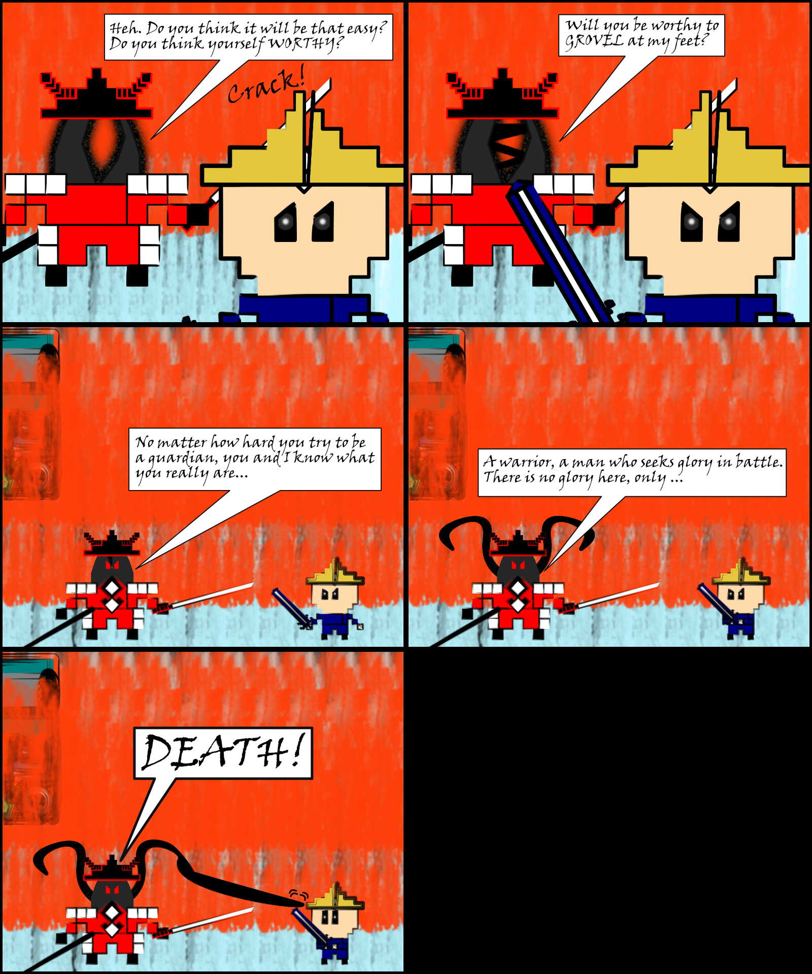 Two Skaynngar struggle. Shroud becomes a veil of death. Vision fades to black.