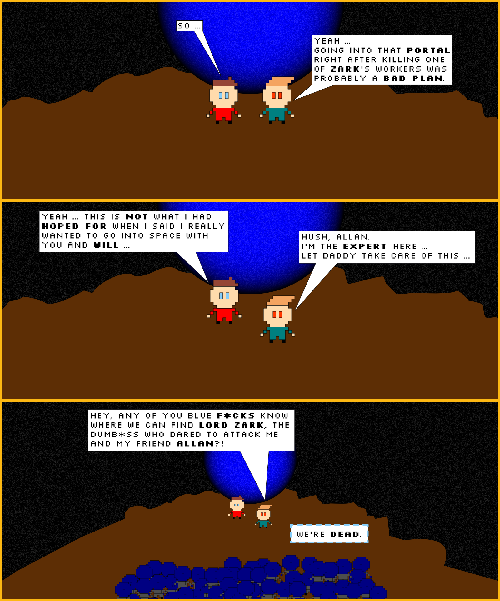 Allan and Joy have fought the Blue Goons before.